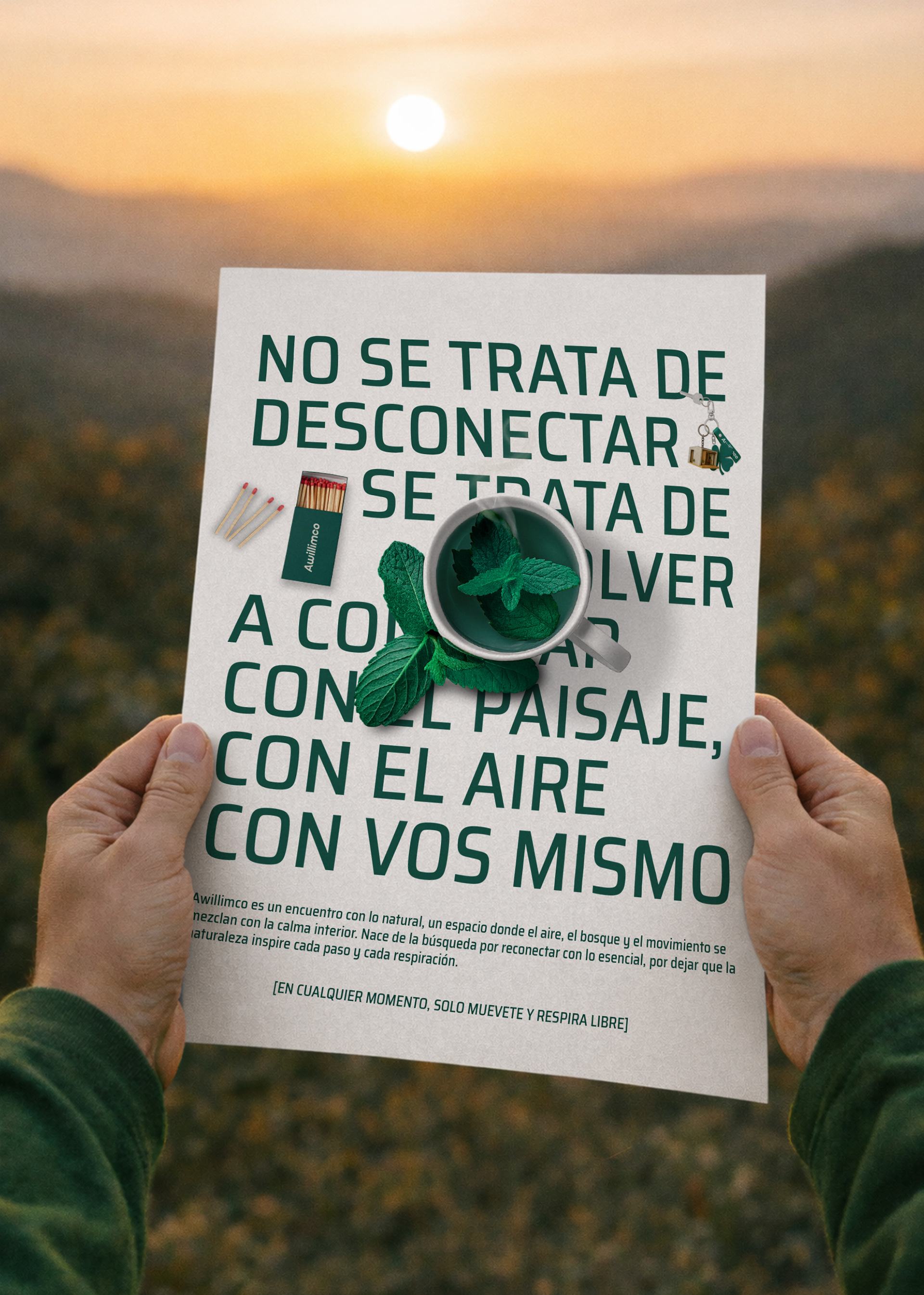 Awillimco propone algo más: seguir conectado, pero de una forma consciente y sana. No se trata de aislarse, sino de redefinir tu conexión con el entorno, con la tecnología y con los demás, una invitación positiva a volver al núcleo emocional a lo esencial (naturaleza, relaciones, sentido, simplicidad) elegir conscientemente dónde y cómo estar presente.