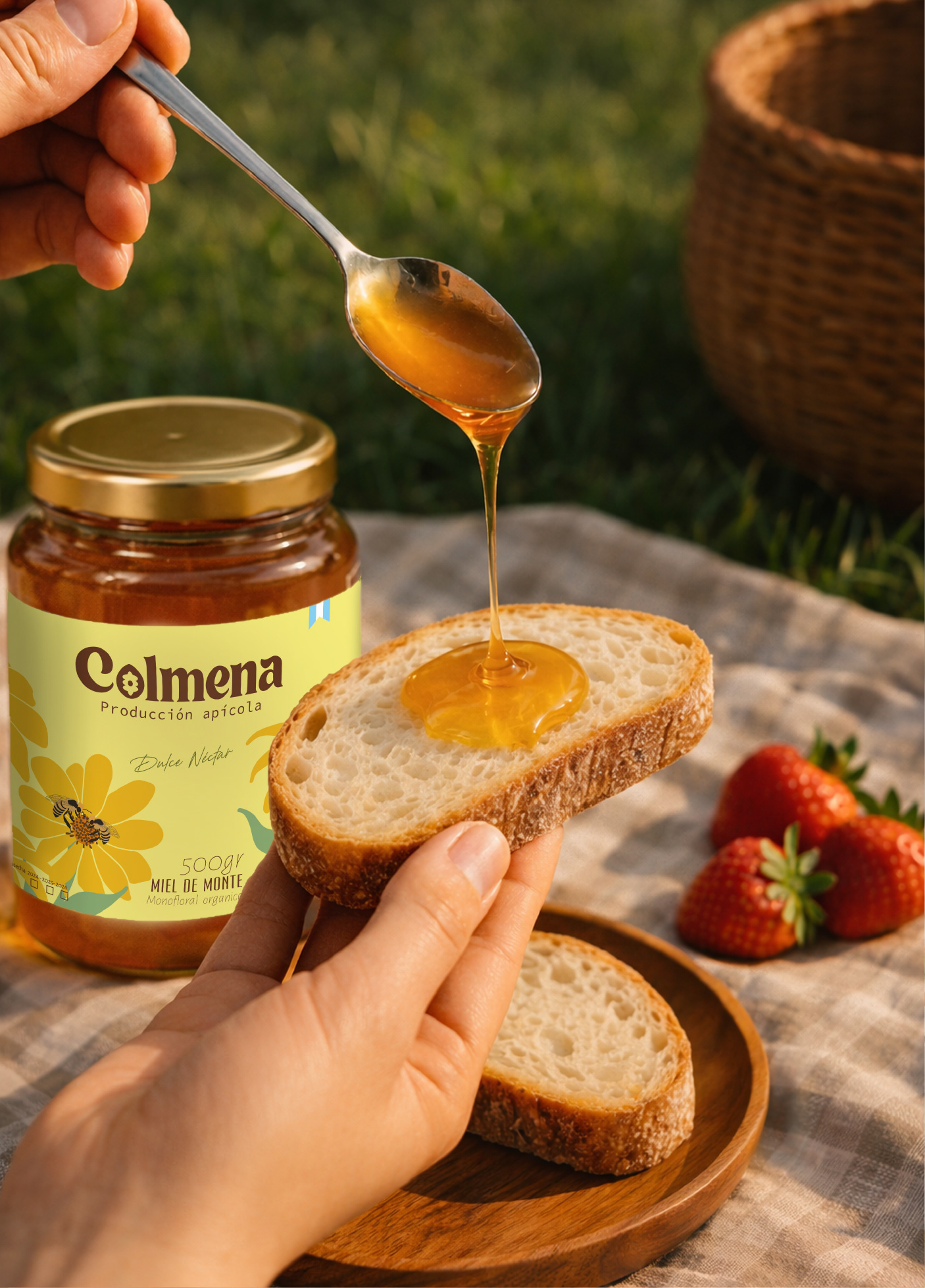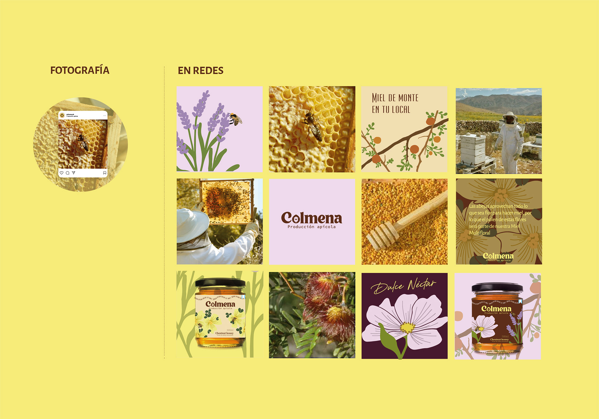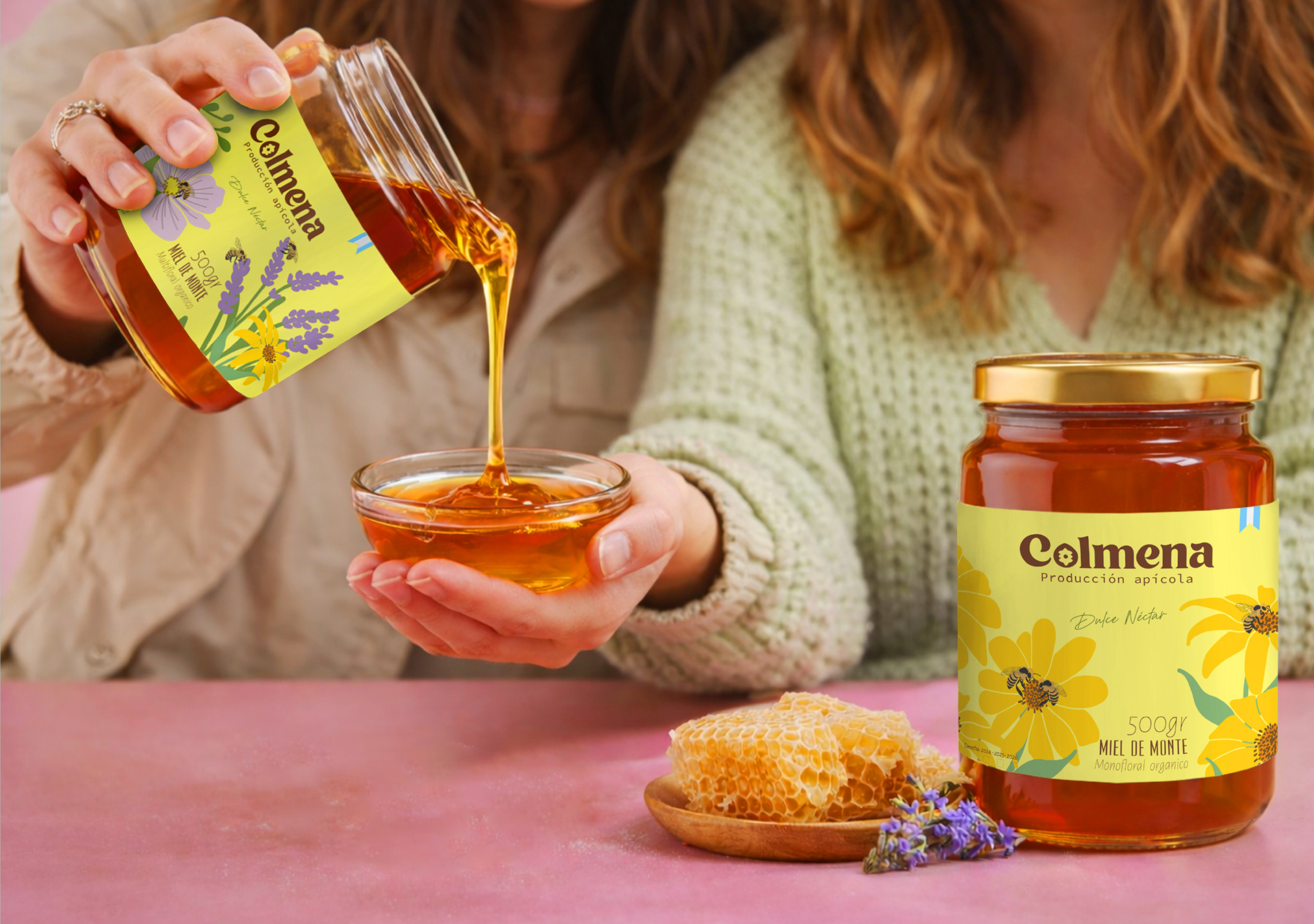 El desafío del proyecto fue transmitir valores como la colaboración, la cercanía y la autenticidad, reflejando el origen natural del producto y el compromiso con la producción local. La identidad busca conectar con las personas desde lo simple y lo honesto, poniendo en valor el esfuerzo humano detrás de cada frasco de miel y la historia de quienes la producen.