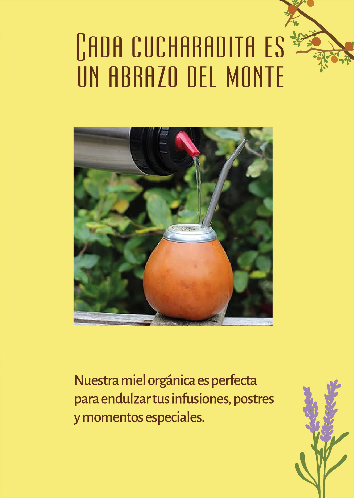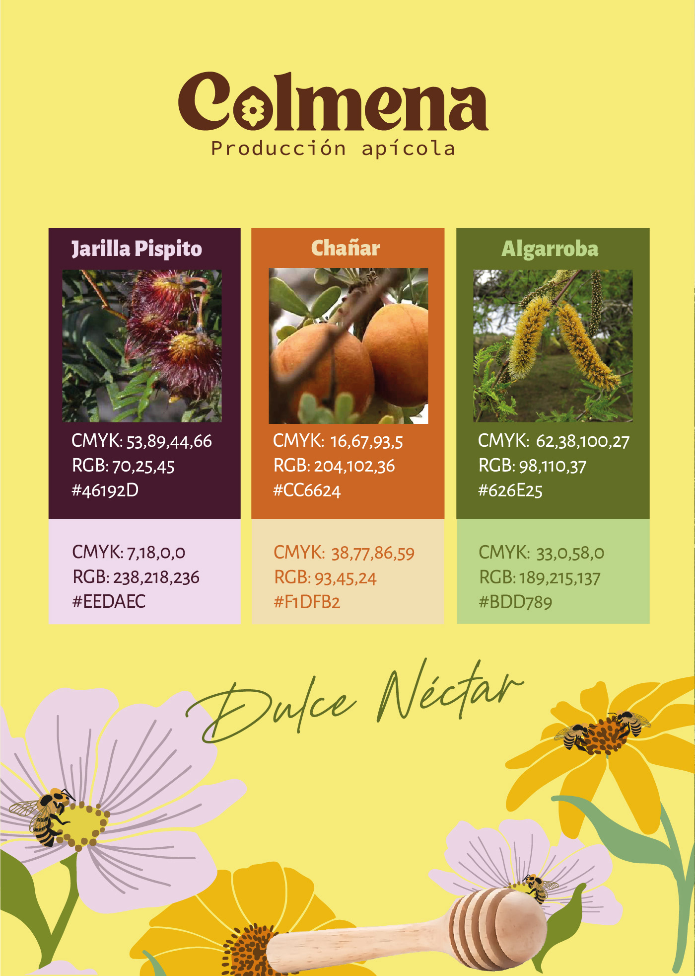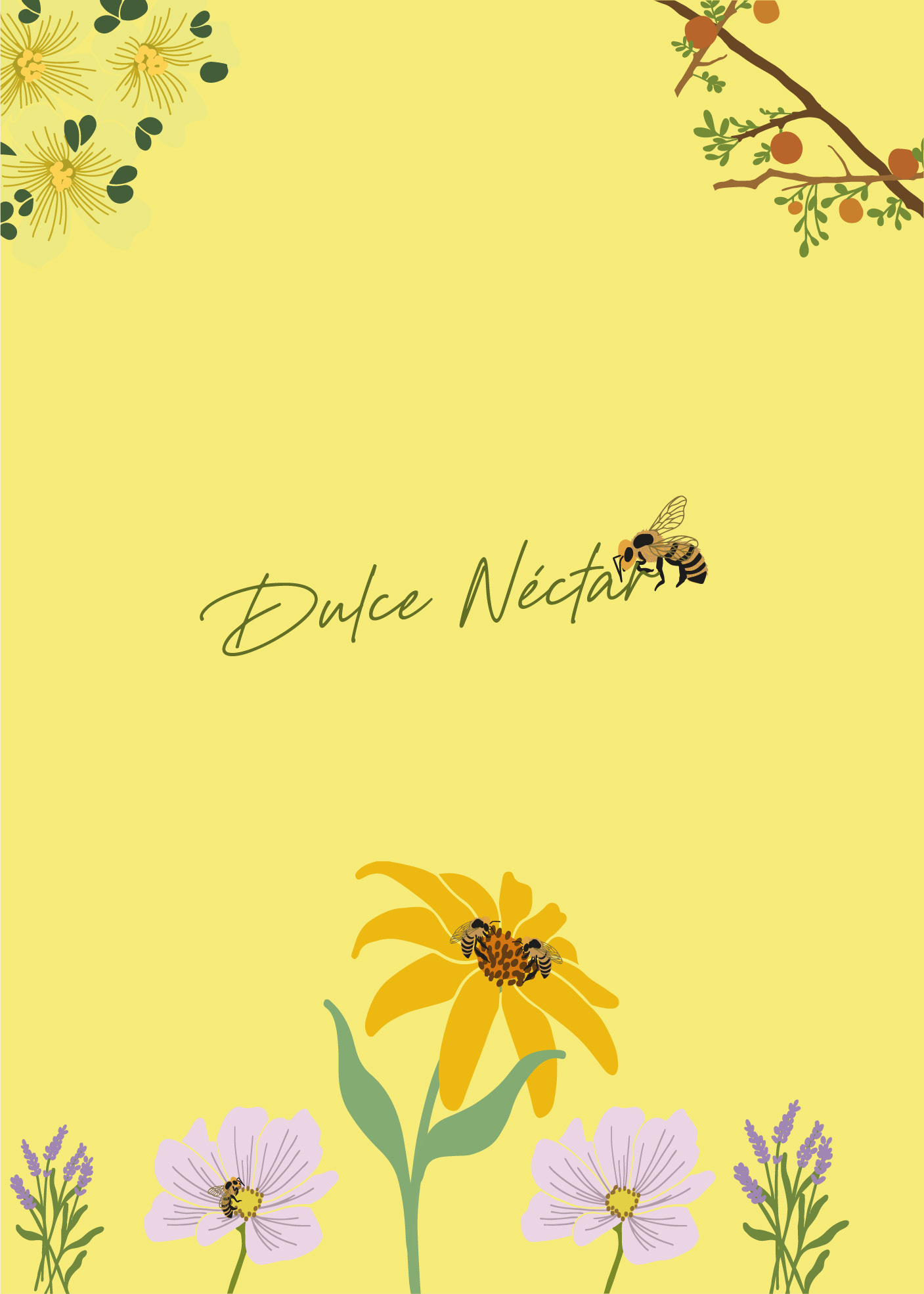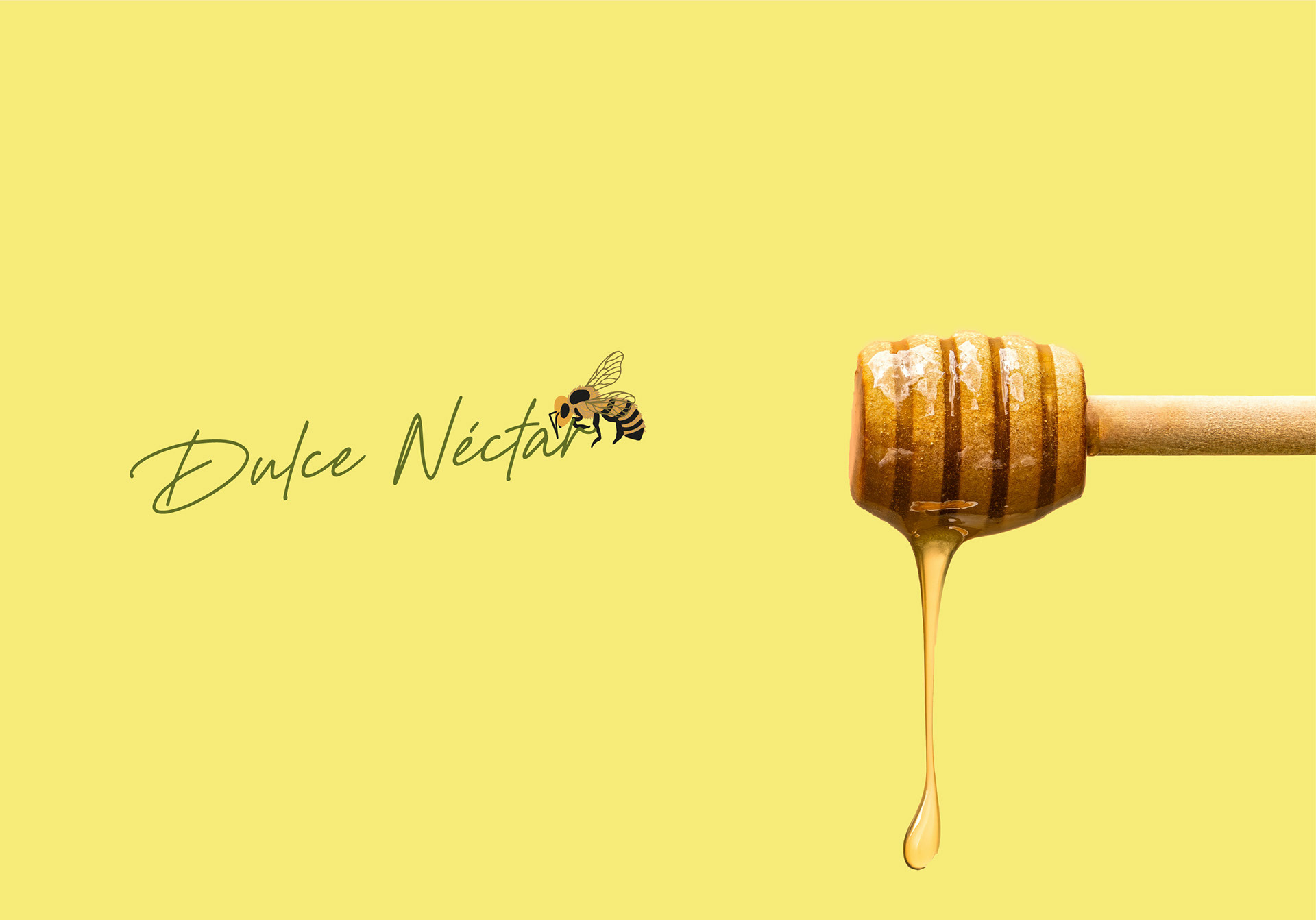 El tagline “Dulce néctar”, desarrollado en tipografía manuscrita, busca transmitir cercanía, calidez y lo hecho a mano. Su trazo orgánico y natural acompaña la identidad de la marca reforzando la idea de origen artesanal, cuidado y dedicación.